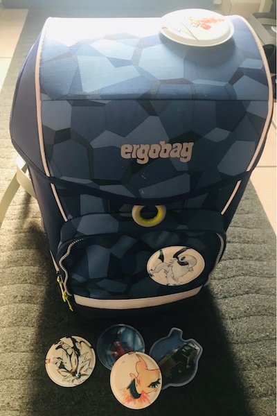 Ja und es gab für uns dann nur eine Entscheidung und diese fiel auf den Ergobag Cubo light. Er wiegt nur 780g und ist somit, bei einem Volumen von 19 Liter, Spitzenreiter auf diesem Markt. Er wird aus recycleten PET Flaschen hergestellt und hat all das was wir wollten. Das genialste an Ergobag sind aber die Kletties. Das sind Klettbilder die man individuell anpassen kann und somit konnten wir den Pokemontraum möglich machen. Der Prinz war ganz ausser sich und ja dieser Ranzen hat einen unglaublich hohen Preis-obwohl den andere Anbieter auch haben.