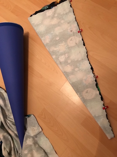 Also setzte ich mich an die Nähmaschine und nähte eine Art Strumpf für die Zuckertüte. Mal im Ernst, was passiert mit dieser Tüte, wenn die Einschulung vorbei ist??? Ich habe keine Ahnung, also wollte ich etwas machen, dass man danach noch verwenden kann. Diesen Strumpf aus dem Pokemonstoff zieh ich dem Rohling einfach an und wenn alles vorbei ist, kann ich den Rohling weitergeben und den Strumpf neu vernähen. Das Thema Nachhaltigkeit kann im Kleinen überall angewandt werden.