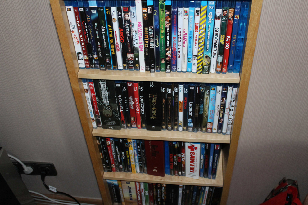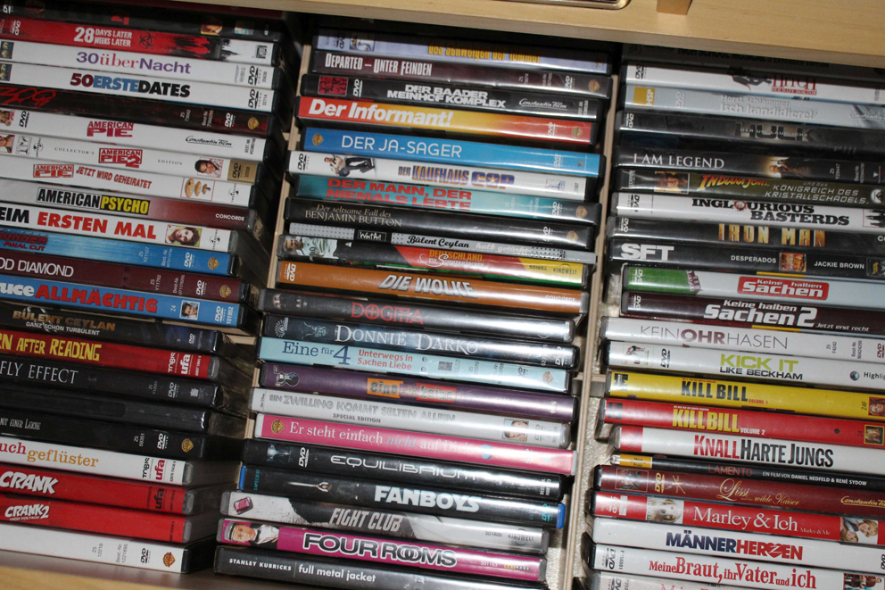 Seitdem wir zusammen sind ist es unser gemeinsames Hobby. Nach einem anstrengenden Tag einfach zusammen auf dem Sofa liegen und einen Film schauen entspannt ungemein. Seitdem die Kinder da sind, schauen wir viel öfter Serien, denn die kann man einfach besser unterbrechen und die sind nicht so lang. Das geht auch unter der Woche sehr gut.In dieser Schublade sind Filme, die wir beide mit in die Beziehung gebracht haben. Nach und nach haben wir unsere Sammlung vergrößert und mittlerweile reicht diese Schublade alleine nicht mehr aus. Es kommen mittlerweile Schränke und Regale dazu. Aus den DVDs wurden Blurays und auch da werden mittlerweile weniger gekauft, denn wir schauen viel auf Amazon.