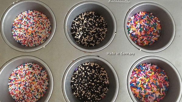 - Die Streusel kann man super in einem Muffinblech zurechtlegen.