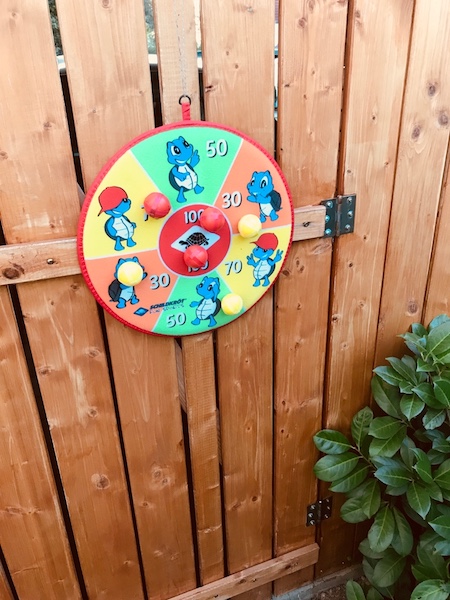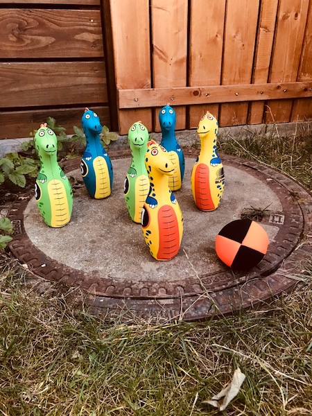 Der Prinz liebt das Werfen. Er hat wirklich viel Kraft in den Armen und so dachte ich an ein Kinder-Dart-Spiel und etwas zum Kegeln. Beide Ideen konnte ich umsetzen.