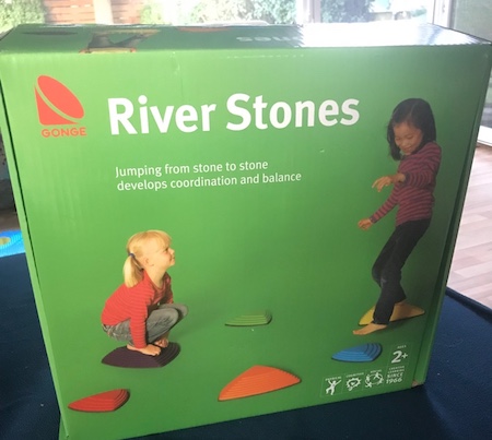 Ein Klettergerüst war auch ein Wunsch aber hierfür fehlt uns leider der Platz also dachte ich an Hüpfen und Hindernisse und entschied mich für Flusssteine und Gymnastikreifen. Die Flusssteine von Gonge sind wirklich unglaublich vielseitig und vor Allem nicht nur für Kinder geeignet. Man kann Balancieren, Hüpfen, einfach Rumstehen, beobachten und mit Hilfe von den Reifen und anderen Sachen zu einem tollen Parcours bauen.