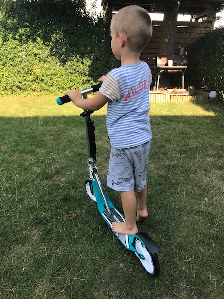 Kleine Details wie eine neue Baggerschaufel und ein Sandbohrer rundeten alles ab und ich war total aufgeregt als ich alles am Abend vor seinem Geburtstag vorbereitete.Der Prinz fährt ja noch kein Fahrrad. Er mag das Treten nicht so richtig und wollte lieber einen Roller. Wir suchten also einen Roller der für die ganze Familie geeignet ist, da wir zum Einen das auch mal ausprobieren wollten und zum Anderen, der Prinz sehr groß ist und die meisten Roller mega schwer. Bei Hudora wurden wir fündig. Ein Aluminium-Roller der bis 100kg belastbar ist und einen tiefen Einstieg hat. Er ist super leicht und wirklich hübsch. Ja was soll ich sagen.