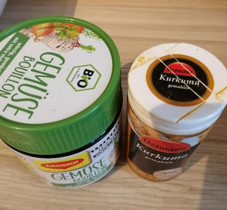 Kurkuma sagt man Vieles nach aber vor Allem, dass es entzündungshemmend ist und eben bei vielerlei Beschwerden eingesetzt werden kann. Kurkuma benötigt immer eine Verbindung mit Öl um seine Wirkung freizusetzen. Ich trinke es oft mit Orangensaft und einem Spritzer Öl und verwende es eben auch beim Kochen. Es ist fast geschmacksneutral und verändert nur die Farbe des Essens. Da ja hier gerade immer mal wieder alle erkältet sind, steht es immer mit bei den Zutaten für meine Gerichte parat.