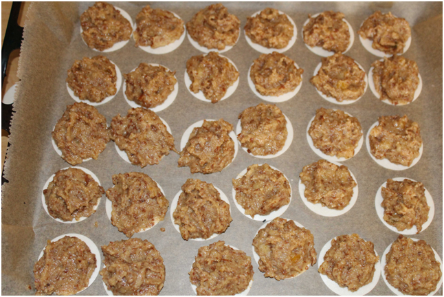 6. Masse auf die Oblaten streichen und über Nacht ruhen lassen (auf Backpapier legen)