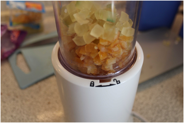 3. Mehl mit Mandeln mischen4. Orangenat und Zitronat im Multizerkleinerer fein hacken