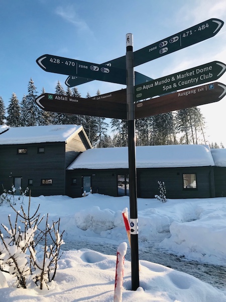 Wir packten erstmal aus und erkundeten dann zu Fuss natürlich das Areal und genossen das schöne frostige Wetter. Im ganzen Park gibt es viele viele Beschilderungen. CenterParcs Allgaeu BeschilderungDie braucht es aber auch, denn sonst verläuft man sich. Unser Haus war recht weit hinten und um in die Hauptgebäude zu kommen ist man schon mal gut 15 Minuten unterwegs. Das Haupthaus beherbergt: