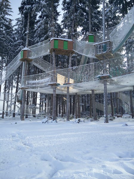 Die Attraktionen im Allgemeinen dort waren wirklich der Wahnsinn. Im Aussenbereich gibt es einen riesigen Kletterwald. Man kann Bogen schießen, im Sommer Tretboot fahren, Fahrräder ausleihen. Man kann wirklich jeden Tag irgendwas anderes machen aber Achtung auch hier können Zusatzkosten entstehen. CenterParcs Allgaeu Kletter Areal