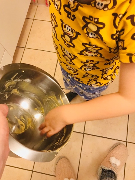 Hier riecht das ganze Haus nach Kuchen und der Prinz hat fleissig zwischendurch die Teigigste genascht. Maulwurfkuchen TeignascherMorgen früh gibts das zum Frühstück und der Rest wandert wie jedes Jahr in die glücklichen Münder der ArbeitskollegInnen.