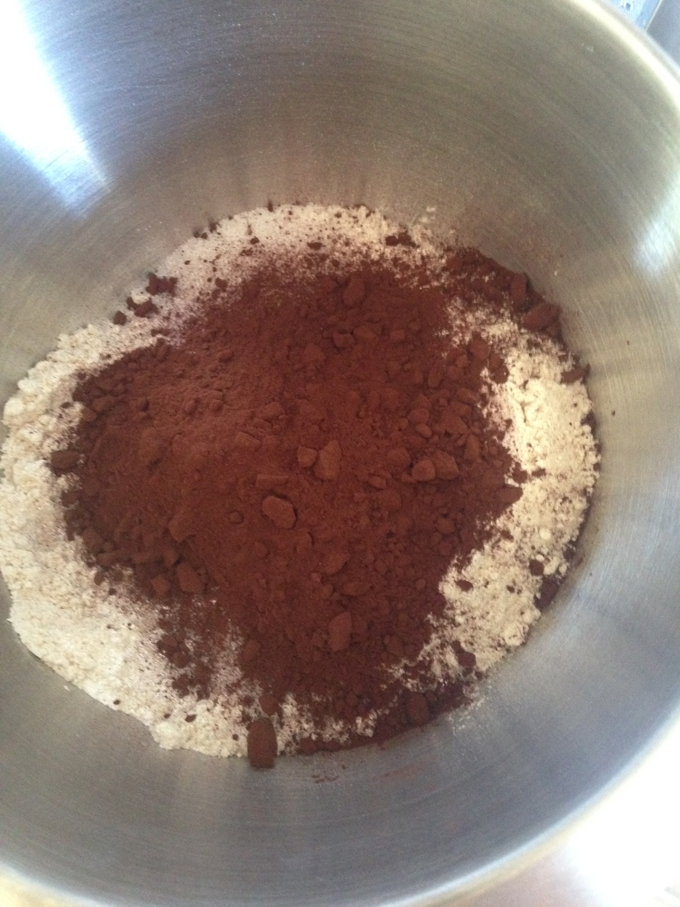 jetzt vermischt ihr alle trockenen Zutaten und fügt dann alle feuchten Zutaten hinzu
