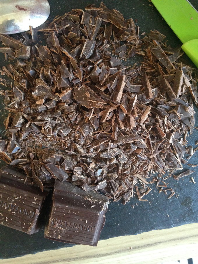 jetzt könnt ihr die Schokolade noch zerhacken oder am Stück lassen…wie ihr es wollt