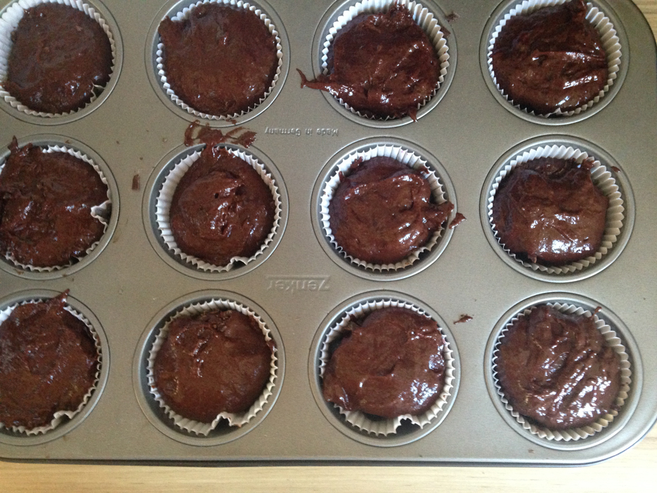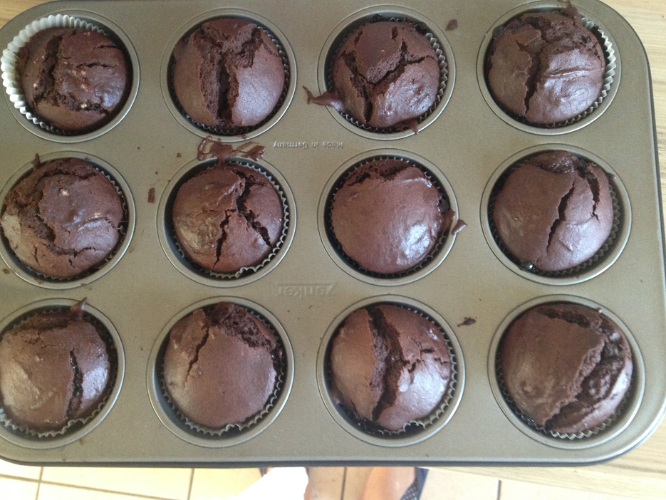 und dann sind Sie fertig, die leckersten Muffins und dann könnt ihr Sie geniessen. Das gute ist, dass die Kiddis auch probieren können. Ich habe Zartbitterschokolade genommen und Backkakao und ein bisschen Süss ist auch mal ok.