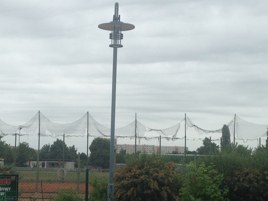 Hier sieht man den Sportplatz meiner alten Schule. Dort habe ich mal mehr und mal weniger erfolgreich versucht, NICHT am Sportunterricht teilzunehmen.