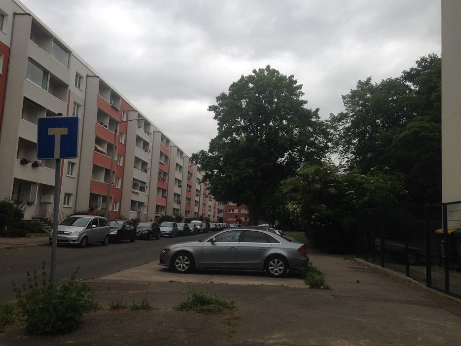 Das ist meine Hood, ein schöner Plattenbaublock. Das ist wirklich Heimat für mich, da sich hier bis auf die Fassade nichts geändert hat.