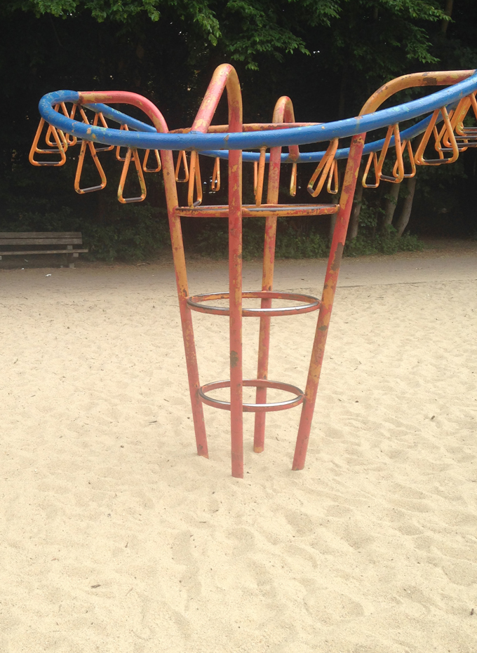 Wir haben einen wunderschönen Park, die Peißnitz. Ja und da habe ich viel Zeit verbracht. Nicht auf diesem Klettergerüst aber es ist noch ein Überbleibsel des alten Spielplatzes, denn ganz viel wurde verändert und erneuert.