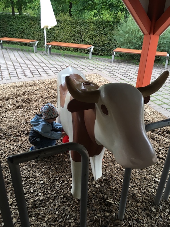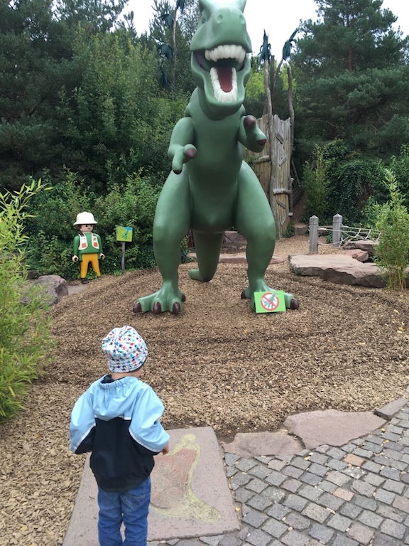 Der Prinz konnte immer zwischendurch spielen gehen. Fotos machen mit lebensgroßen Playmobilfiguren und ich konnte einfach ganz entspannt sitzen bleiben. Das Wetter war ziemlich schlecht aber das hielt uns nicht ab. Wir erkundeten den kompletten Park und hatten soviel Spaß. Wir gruben nach Gold, sahen Dinosaurier, melkten Kühe, waren auf einer Ritterburg und vieles mehr.