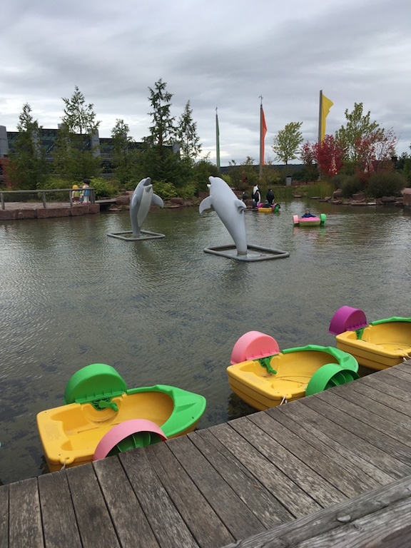 Dort war ein wunderschöner See, mit dem Schiff, vielen lebensgroßen Playmobilfiguren, Brücken und Flöße. Wir paddelten tatsächlich auf so einem Floß und das ist gar nicht so einfach mit einem Dickbauch, einem 4jährigen und einer Tasche.