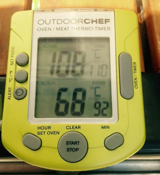 Das es manchmal anders kommt als man denkt zeigt unser 1. Versuch. Unser Fleisch hatte nach 42 Stunden eine Kerntemperatur von 83 Grad und wir mussten das Experiment beenden. Das Fleisch war dennoch super zart und lecker. Wir hätten eigentlich weitermachen müssen aber die 2. Gasflasche war bereits fast leer und Sonntagabend nunmehr erreicht.