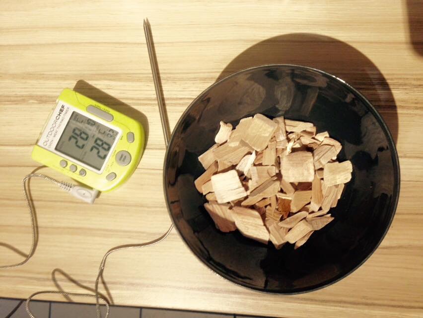 Nun müsst Ihr das Thermometer in dem Fleisch platzieren und jetzt heißt es warten und kein Zeitdruck, da jedes Stück Fleisch anders ist.
