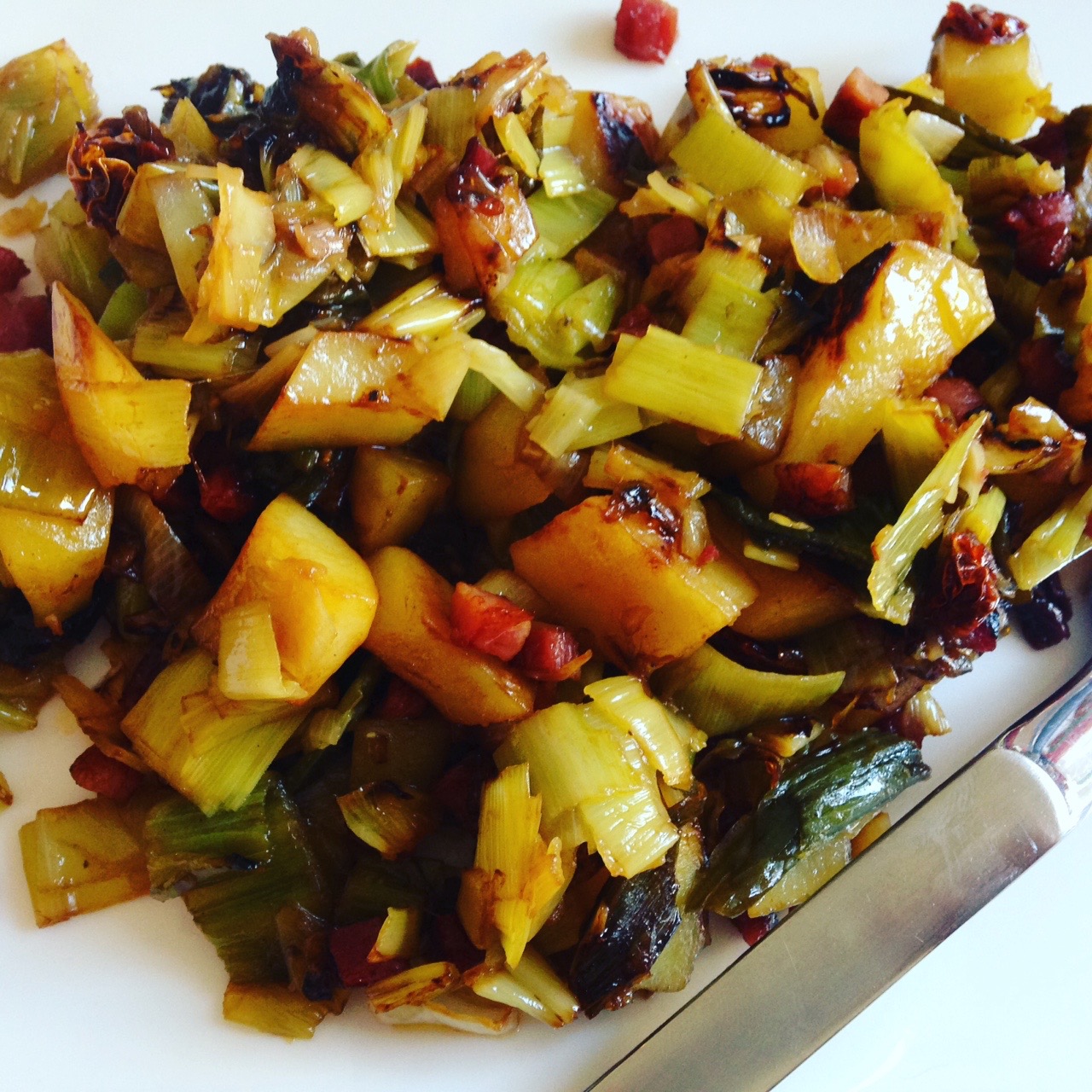 folgende Zutaten für 4 Personen benötigt ihr für die schnelle Lauchpfanne: